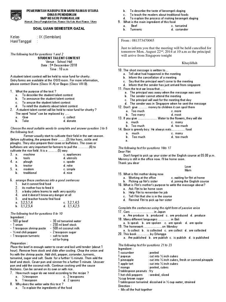 - Soal Pilihan Ganda: Menguji kemampuan siswa dalam memilih jawaban yang paling tepat dari beberapa opsi.